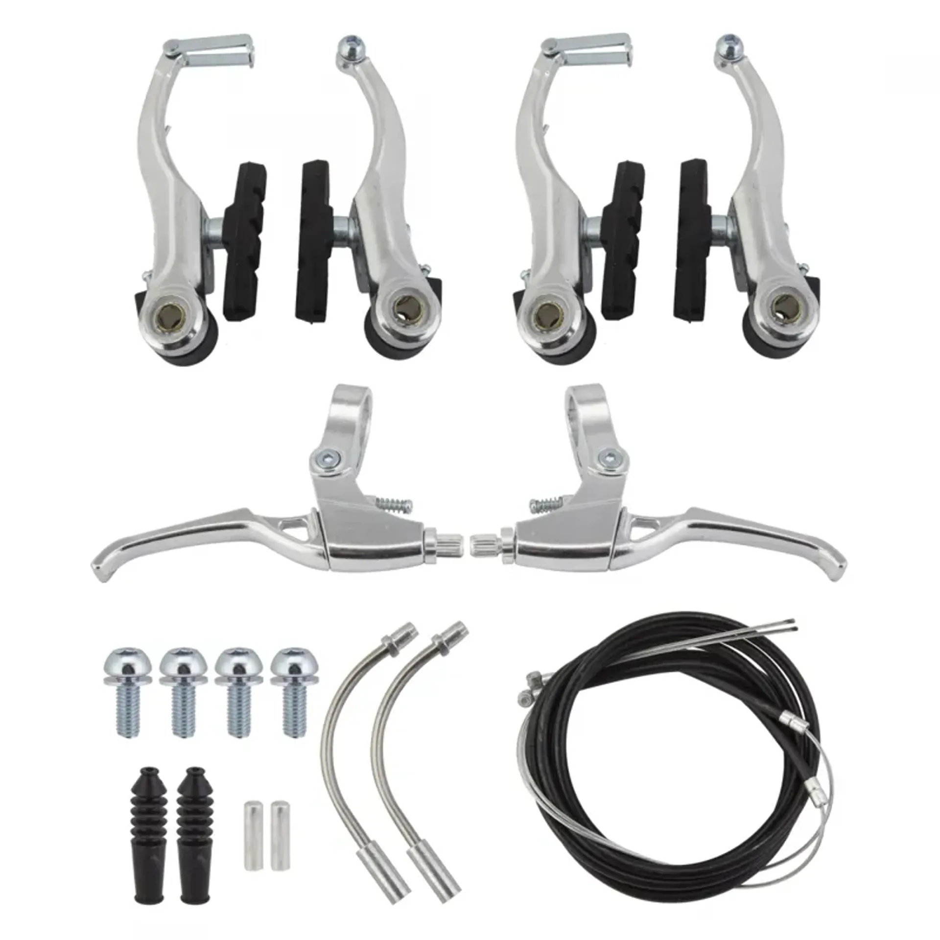 V-brake caliper and lever set including all cable housing, fixings and stainless steel guide pipes.